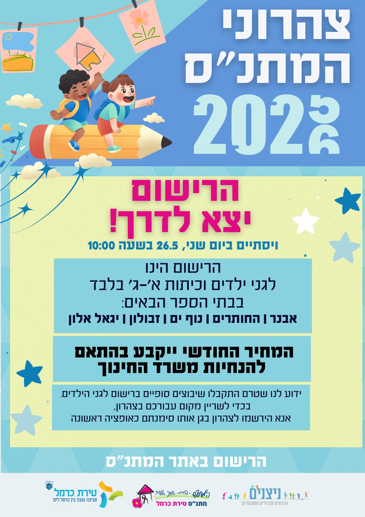 נפתחה ההרשמה לצהרונים ואנו שמחים להזמין אתכם להירשם בהרשמה המוקדמת עד 26/05/2025 ולהבטיח את מקומכם איתנו.